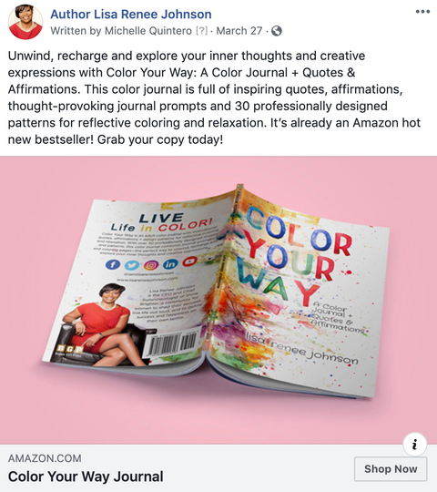 183% increase in Instagram engagement and a 97% increase in Facebook engagement for Author Lise Renee Johnson in 1 year